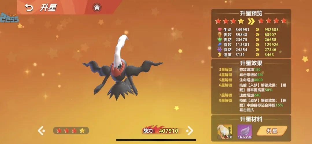 在培养宝可梦的页面中,点击升星就可以进入对应界面了。